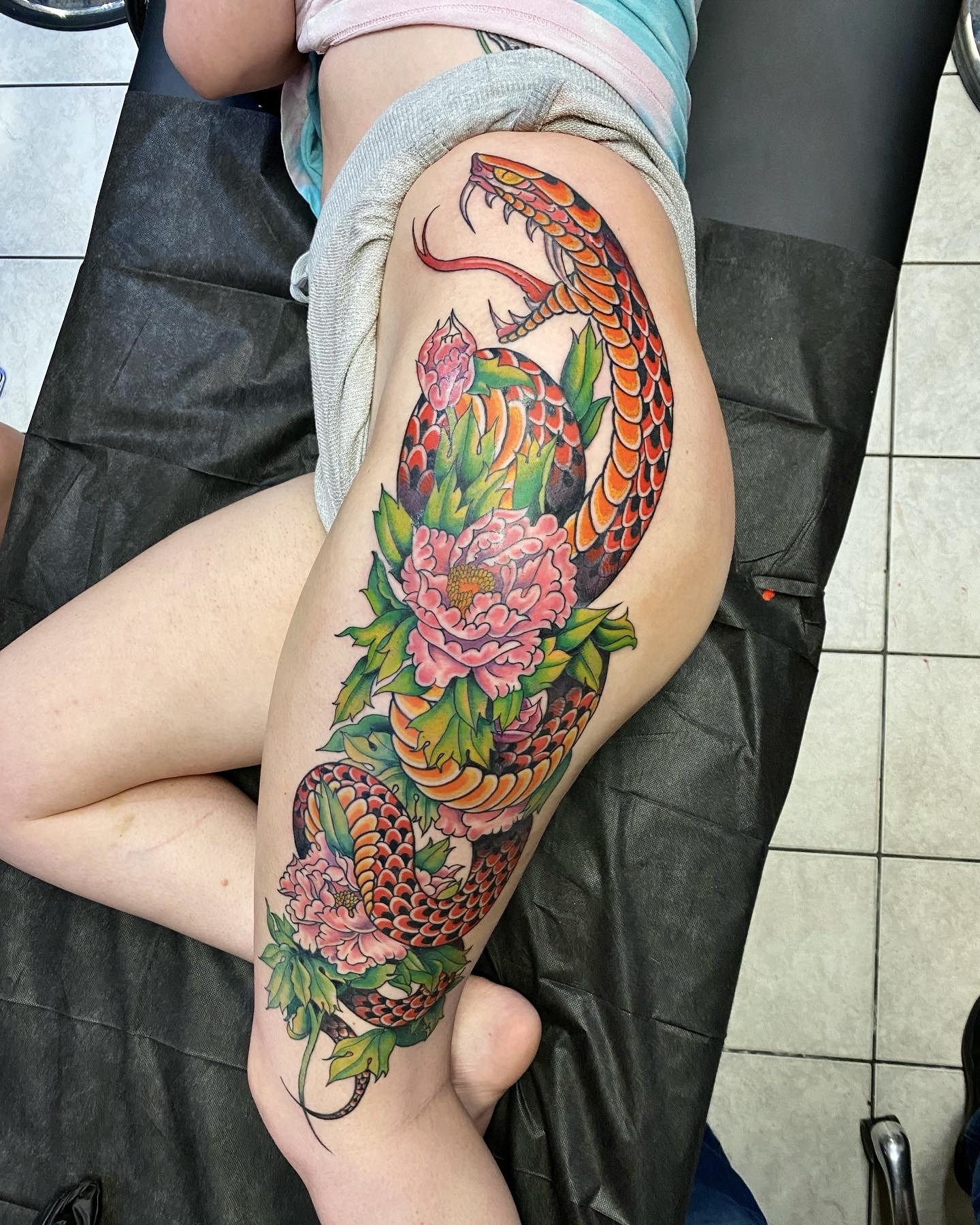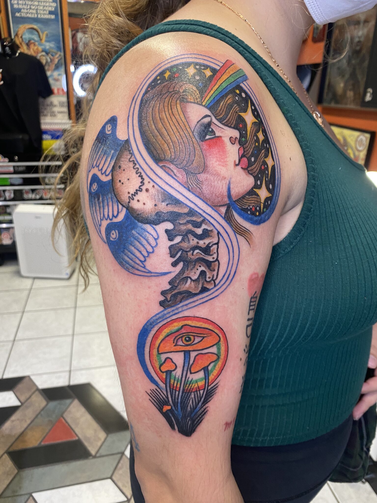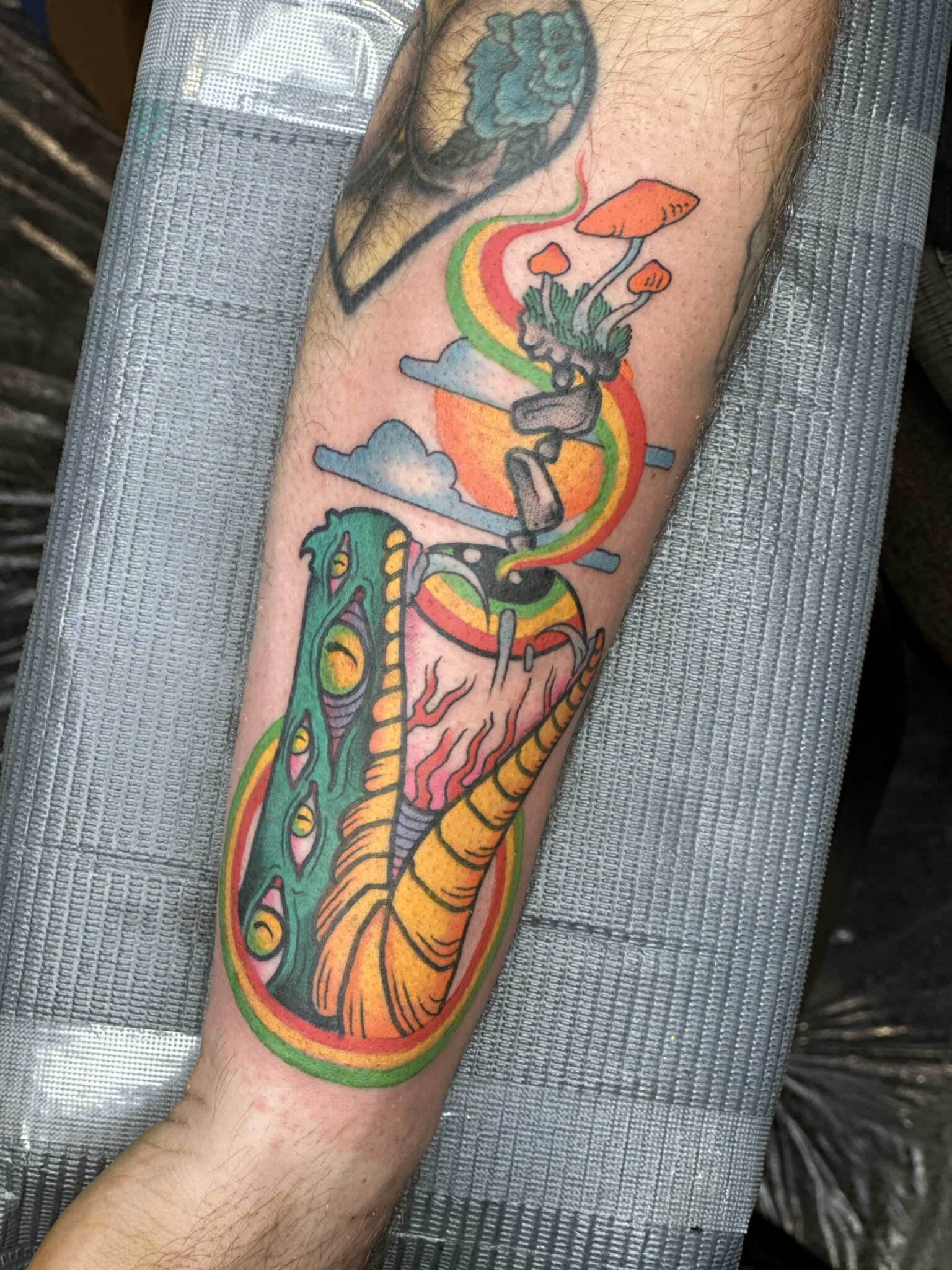 Fast forward to today and I now walk that path. I try to implement all the years of artistic inspiration, discipline, and practice I’ve gained into everything I do with tattooing. Whether it’s skulls, Japanese sleeves, trippy mushrooms, small tattoos or fine line daisies, the client comes first and I remain dedicated to making their ideas something they feel proud to adorn. Cheers!